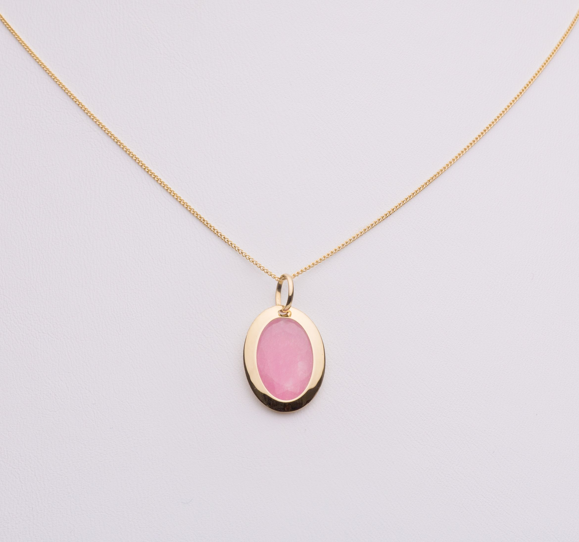 Colgante de oro de 18 Kt con cuarzo rosa.