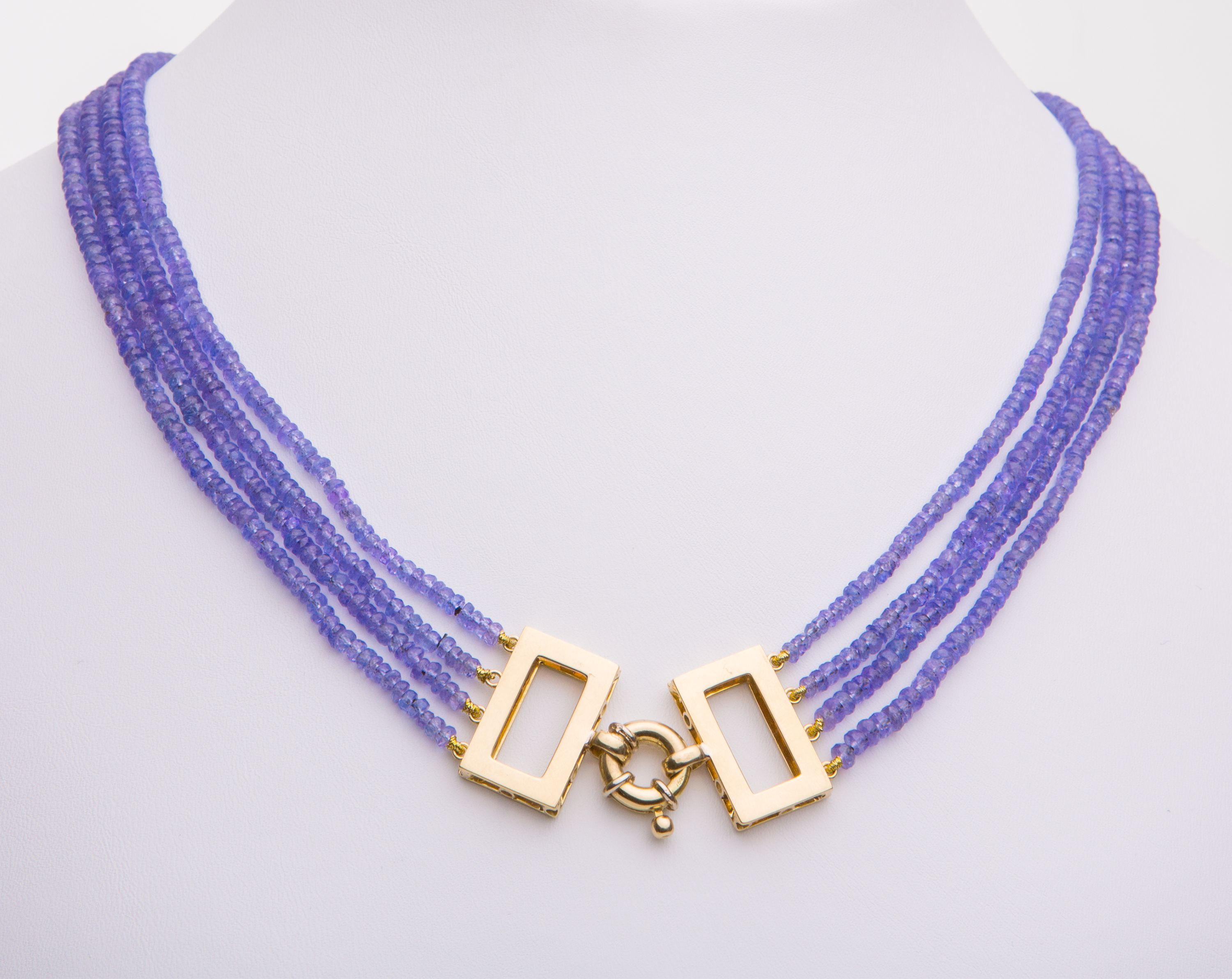 Collar de 4 hilos de tanzanitas con cierre de oro en su color de 18 Kt.