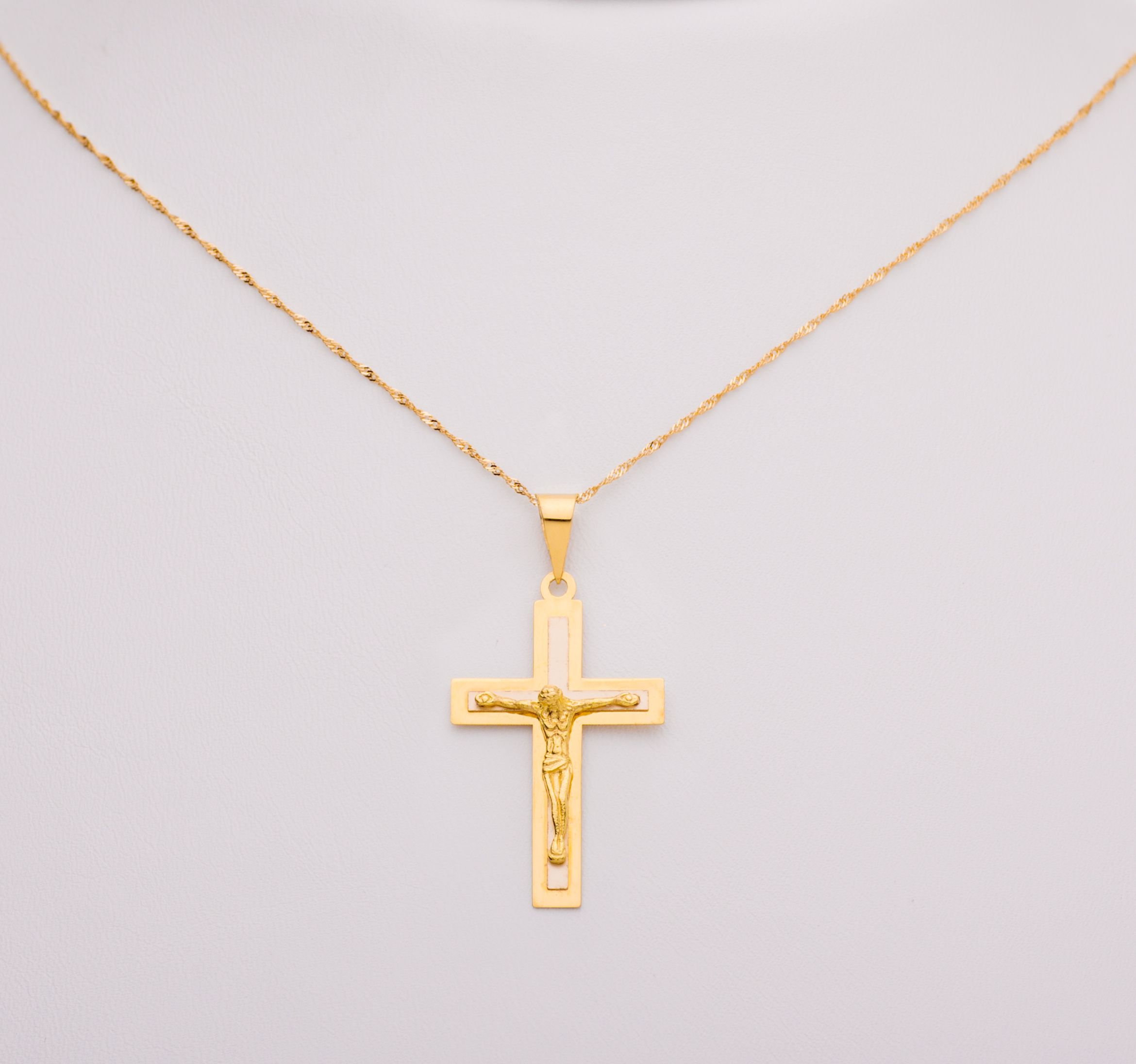 Cruz de oro en su color de 18 Kt con cristo