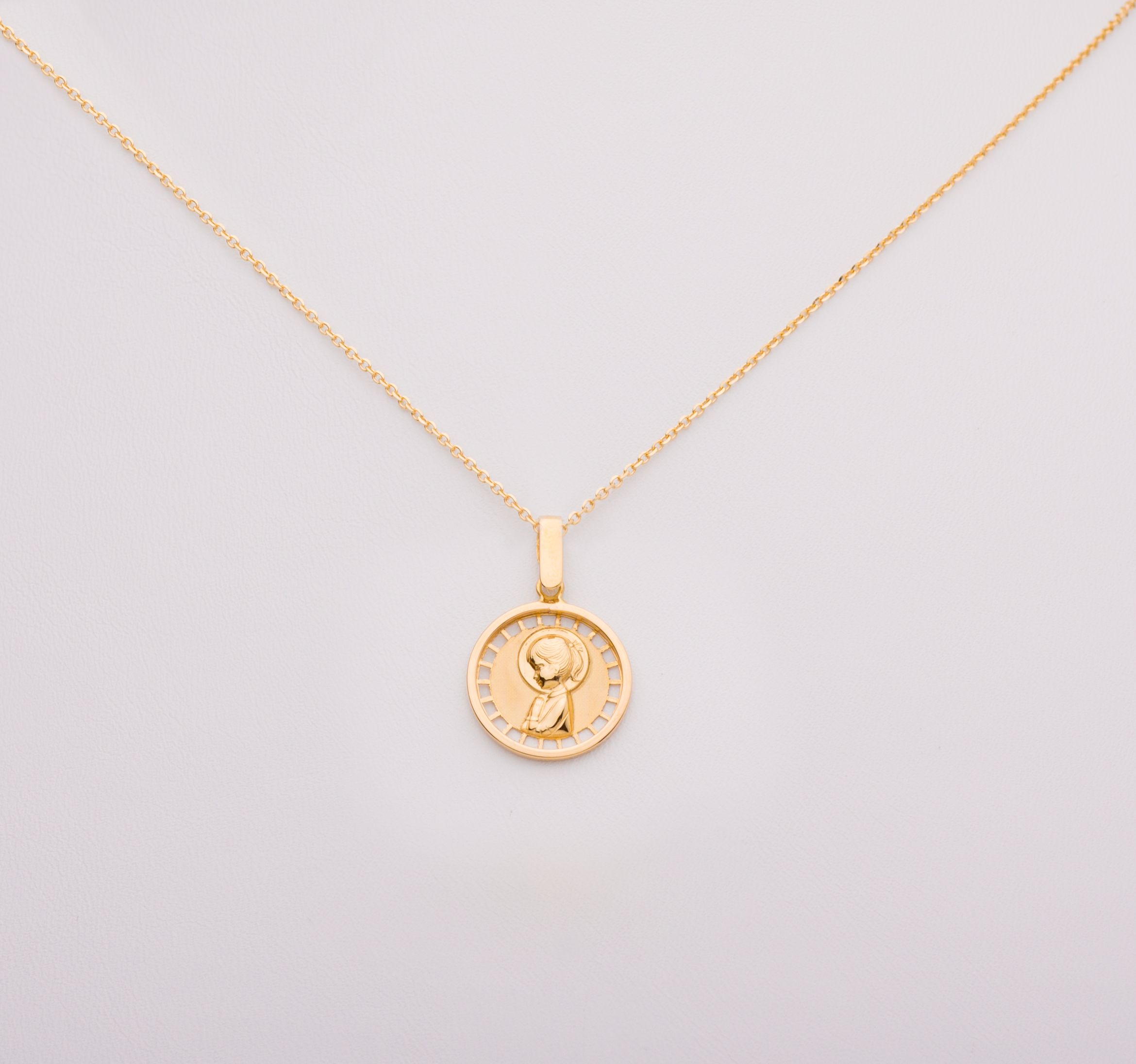 Medalla con virgen niña en oro en su color de 18 Kt