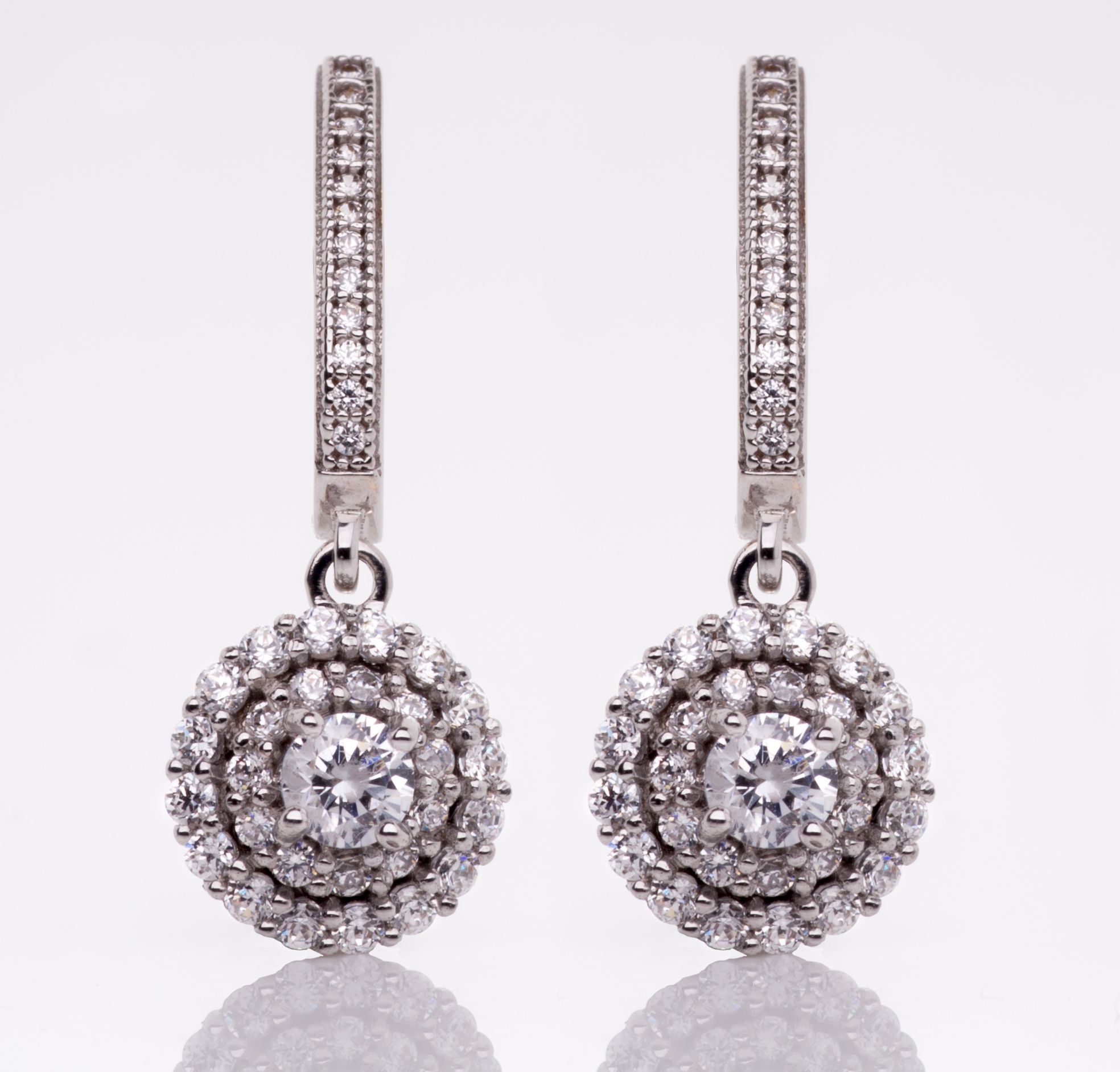 Pendiente de oro blanco de 18 Kt con circonitas.