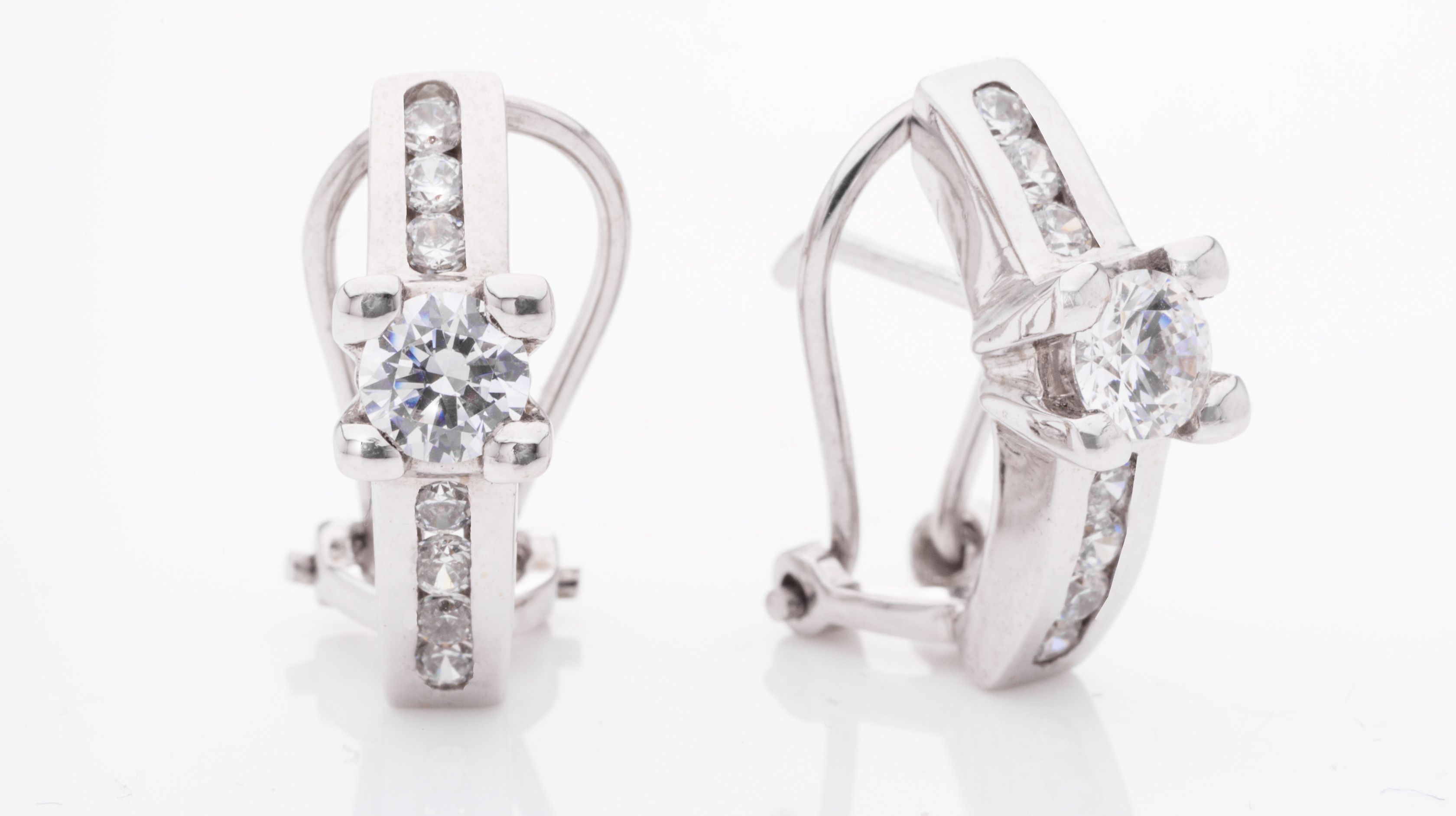 Pendiente de oro blanco de 18 Kt y circonitas