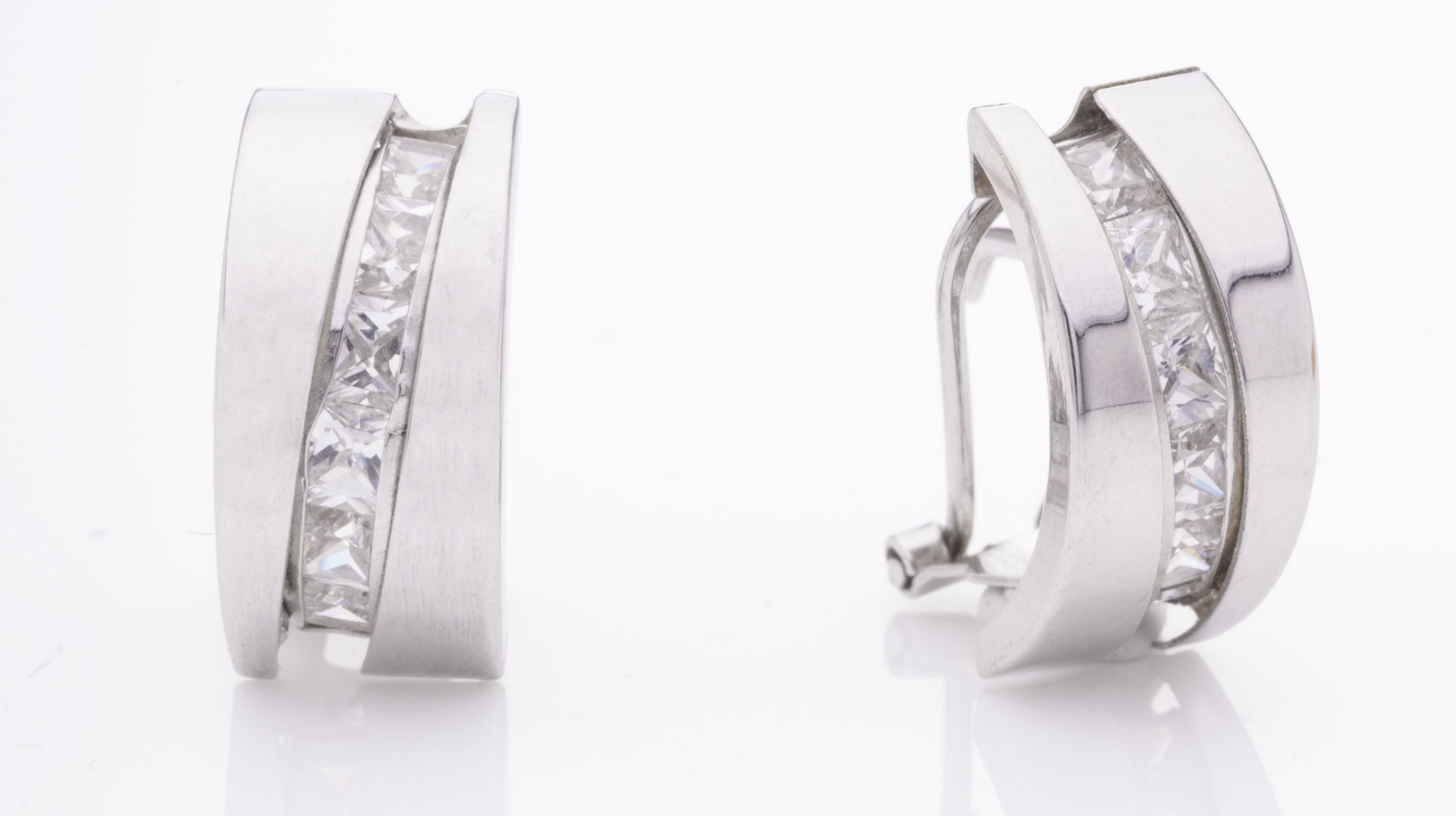 Pendiente de oro blanco de 18 Kt con una franja central de circonitas.
