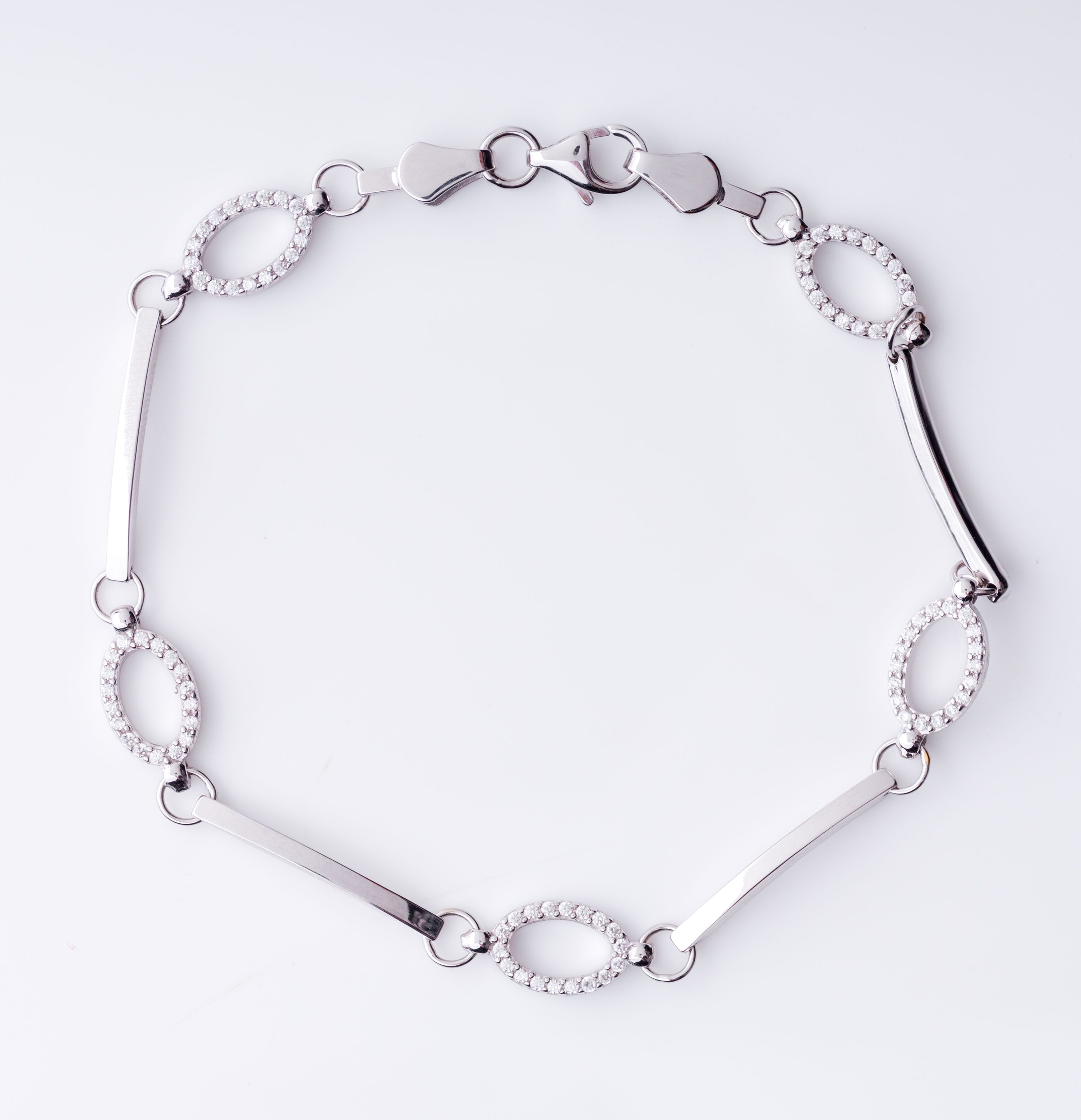 Pulsera de oro blanco semirrígida de 18 Kt con circonitas