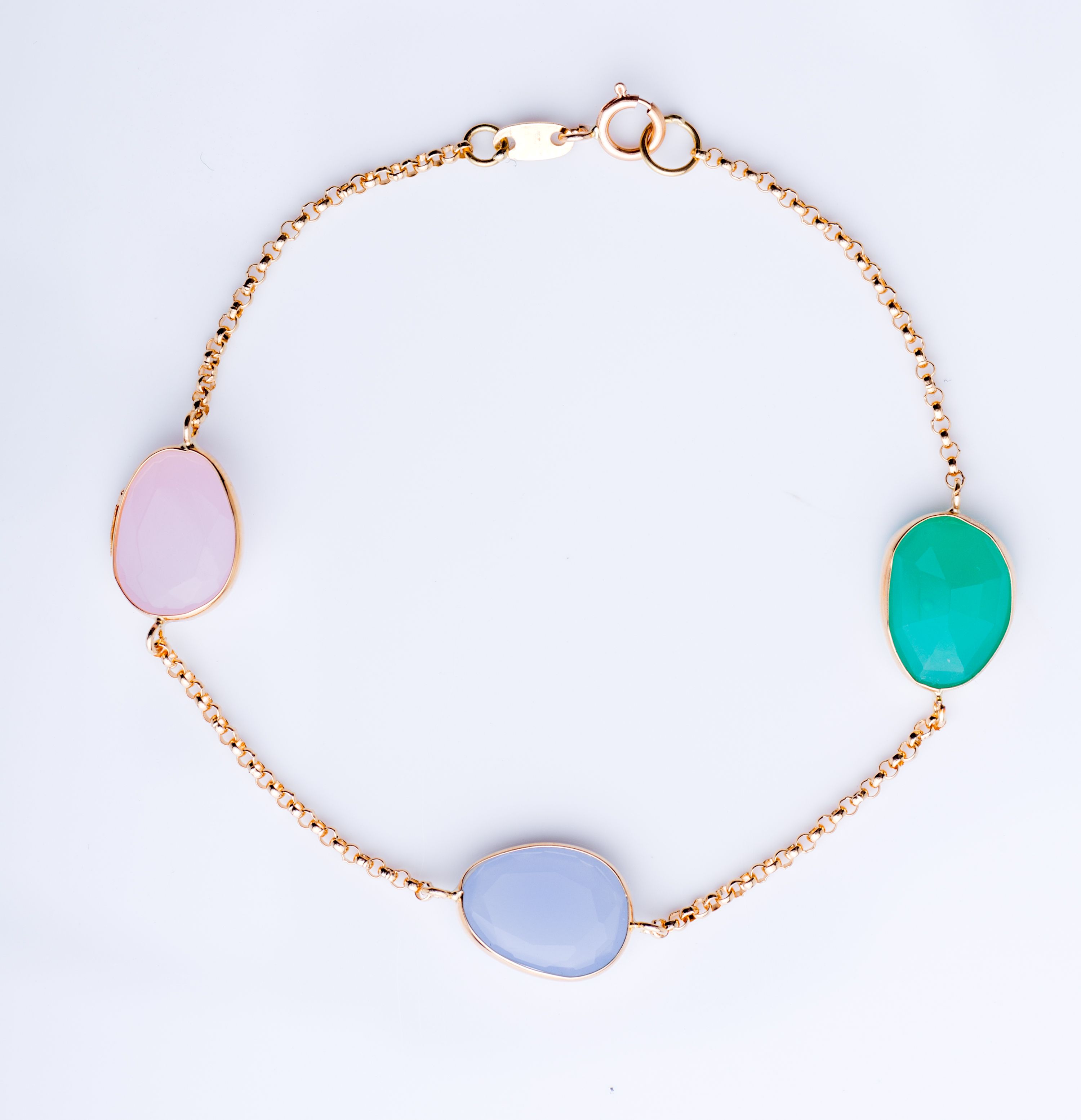Pulsera de oro en su color de 18 Kt con cuarzos de distintos colores.