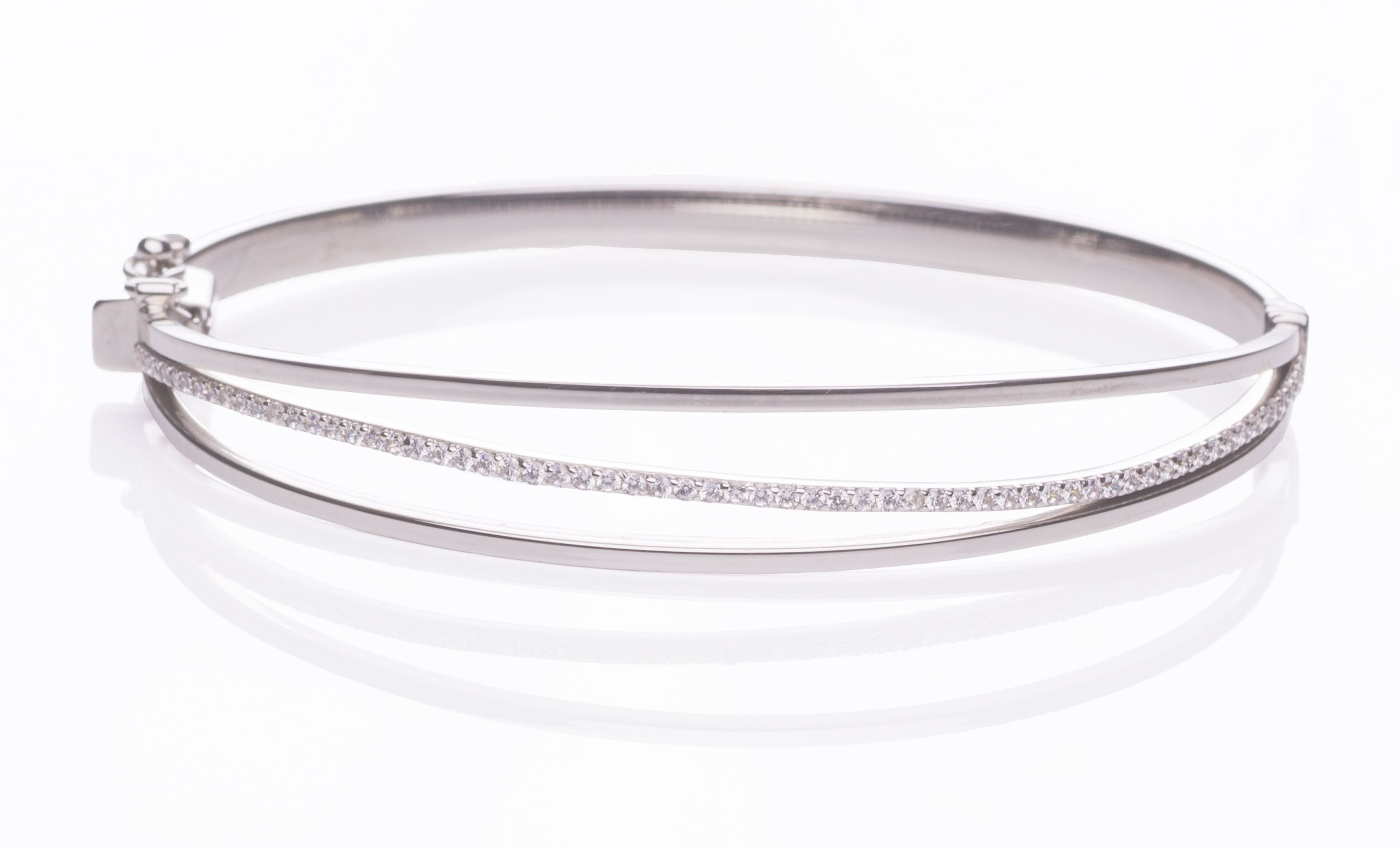 Pulsera rígida de oro blanco de 18 Kt y circonitas