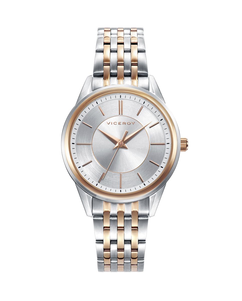 Reloj de Mujer Viceroy Grand tres agujas con caja y brazalete de acero con IP rosa. Esfera plateada e índices rosas.
