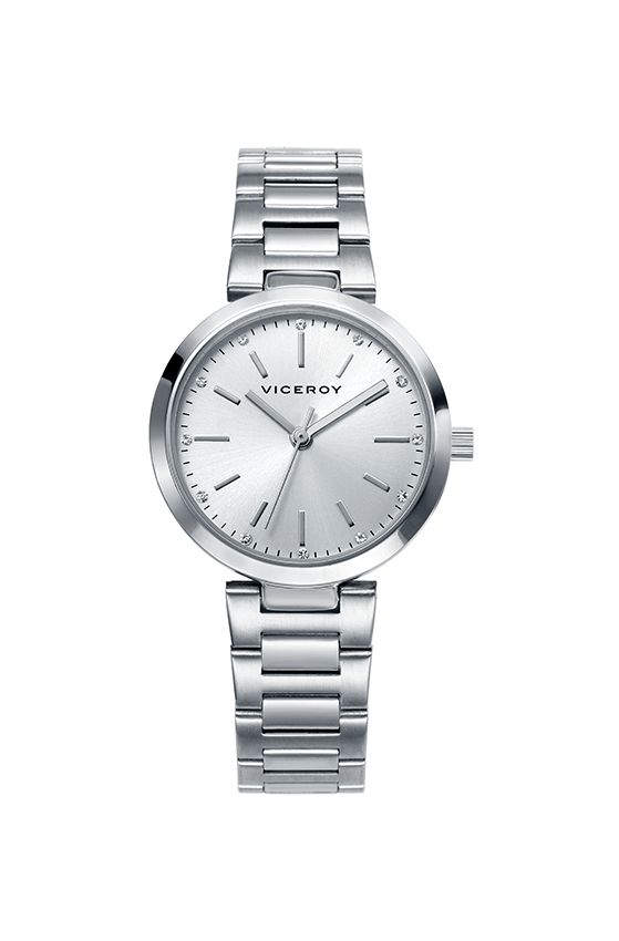 Reloj de mujer Viceroy , caja y brazalete de acero, esfera plateada y blanca con índices.